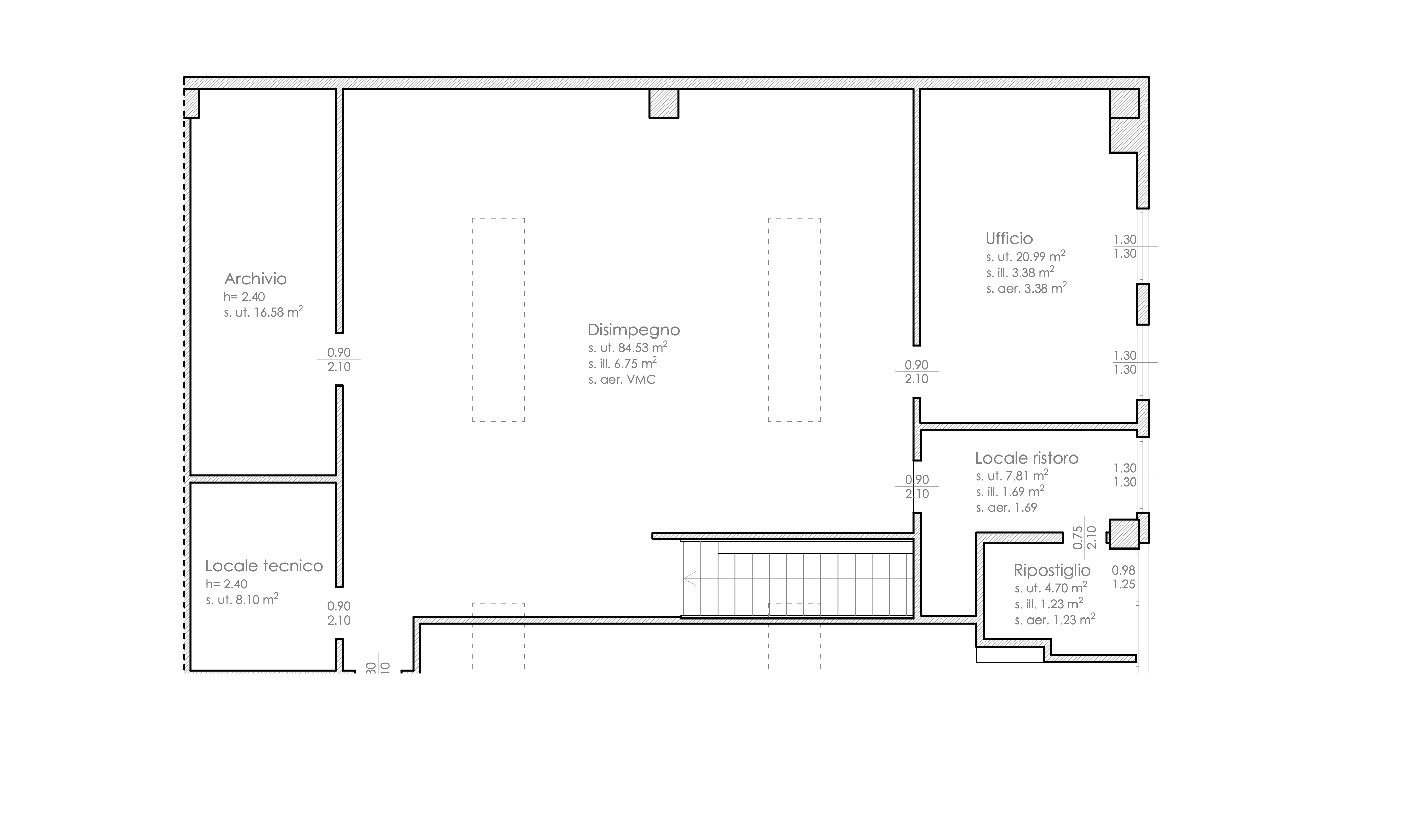 Metrature: 150 mq di ufficio al primo piano.