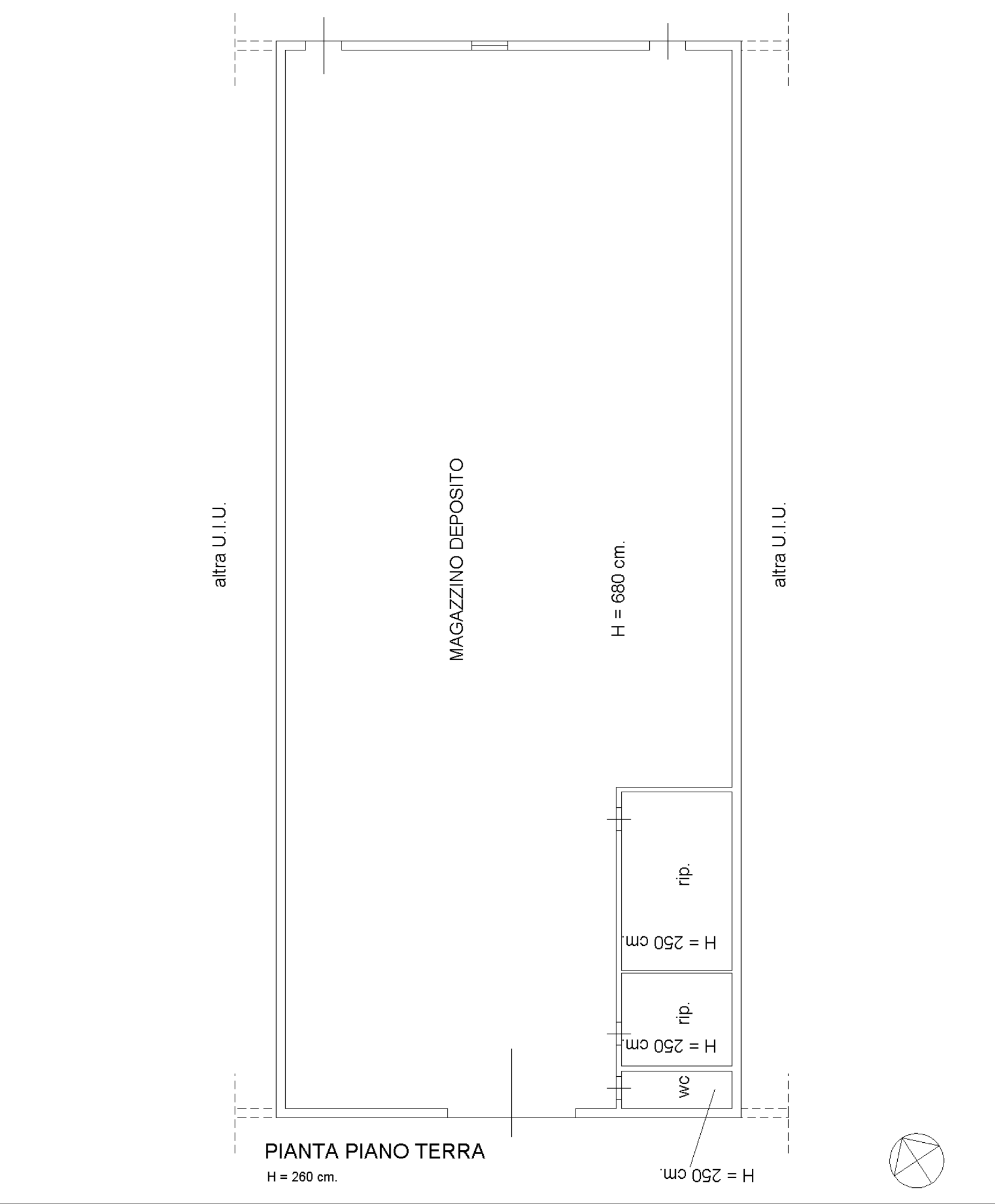 Metrature: capannone 800mq, uffici 50mq, scoperto esclusivo 500mq, 6,8m di altezza.