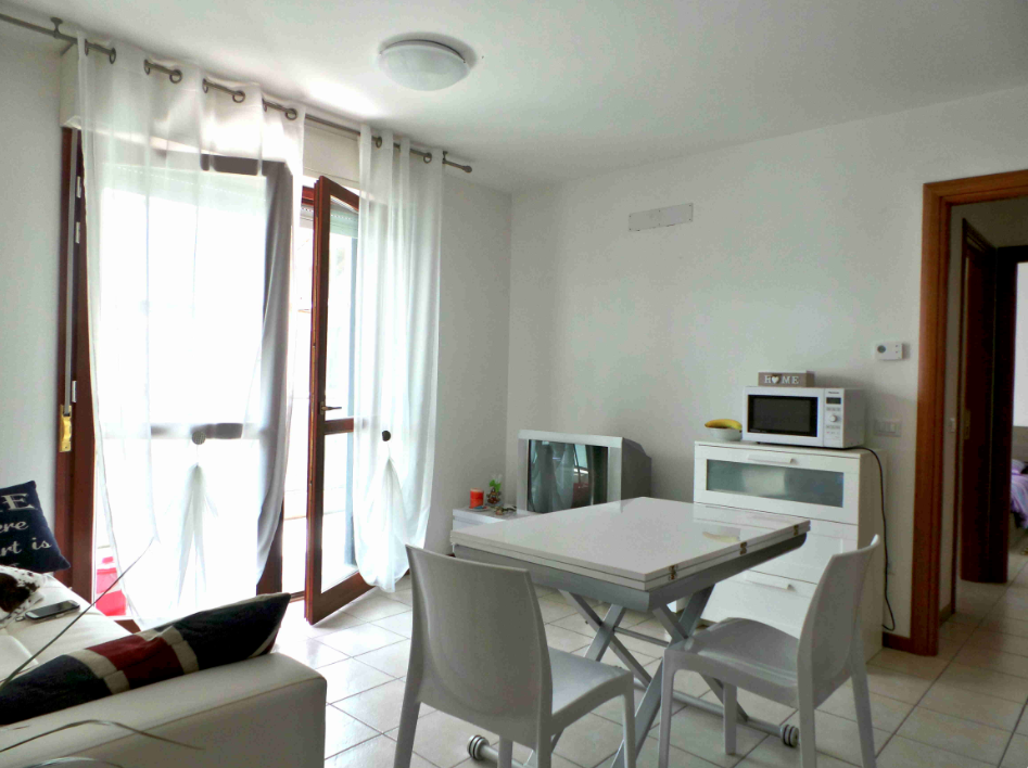 Mini appartamento ARREDATO in palazzina del 2012, con ampio terrazzo abitabile, in posizione strategica ampiamente servito, completamente esposto a SUD. L’immobile è composto luminosissima zona giorno con cucina a vista, disimpegno zona notte con comoda nicchia per lavanderia o comodo armadio a 4 ante, una camera matrimoniale e un bagno con sanitari sospesi, box doccia. Tutti gli ambienti sono dotati di portafinestra con accesso al terrazzo ampiamente vivibile. Riscaldamento condominiale di ultima generazione a basso consumo energetico con conta calorie a pavimento ( paghi solo quello che consumi ). Cantina e posto auto scoperto.
