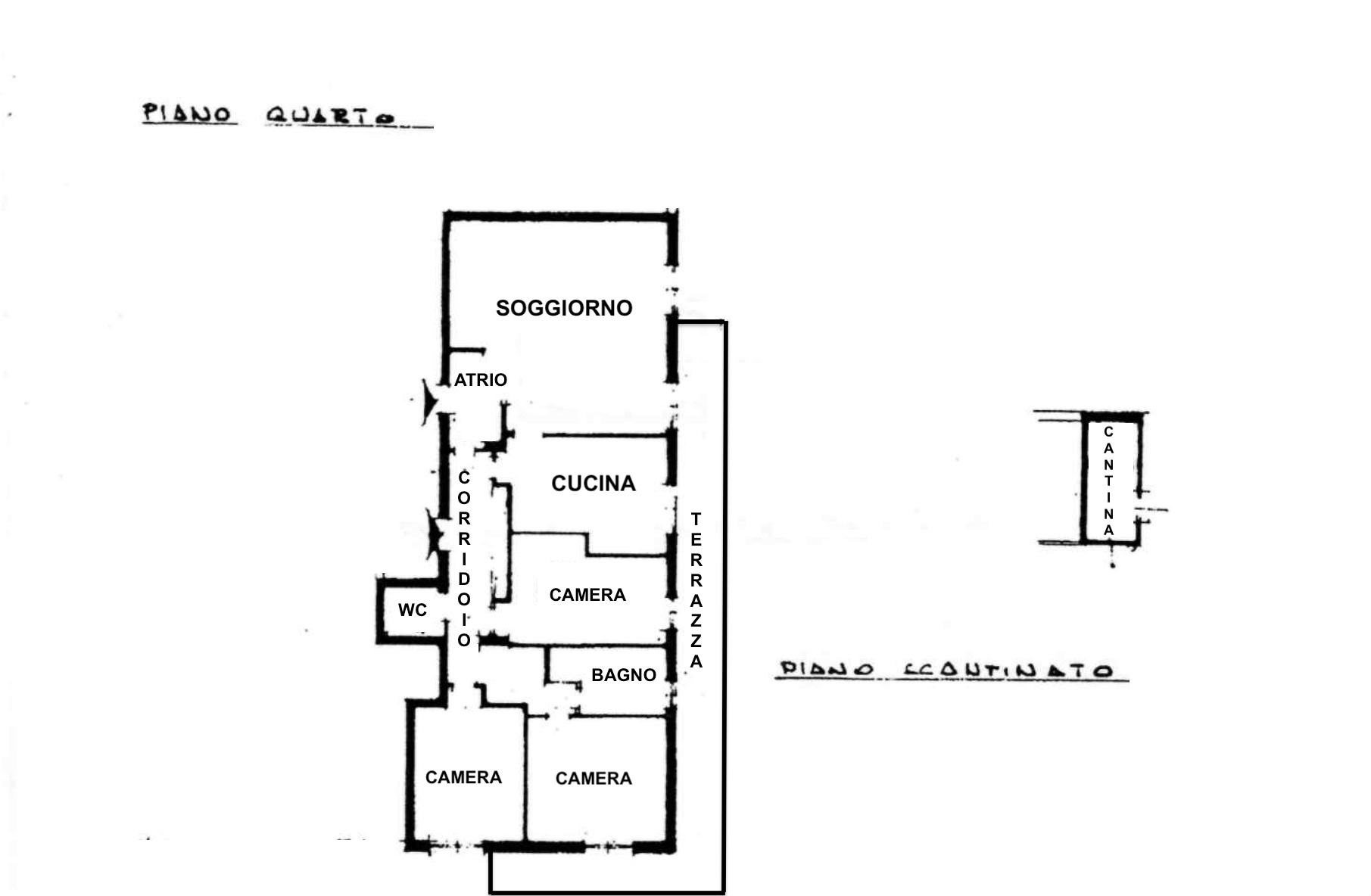 Metrature: appartamento 110mq; terrazza 30mq; garage 15mq; cantina 5mq.